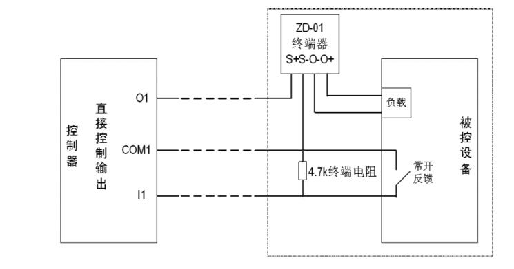 O、COM:組成直接控制輸出端,通過ZD-01終端器與負(fù)載連接,O為輸出端正極,COM為輸出端負(fù)極,啟動后O與COM之間輸出DC24V。