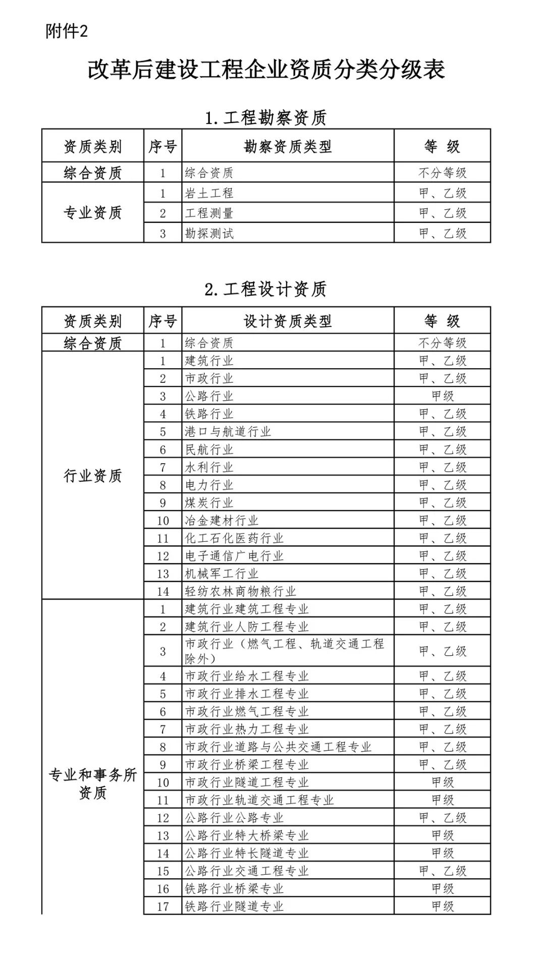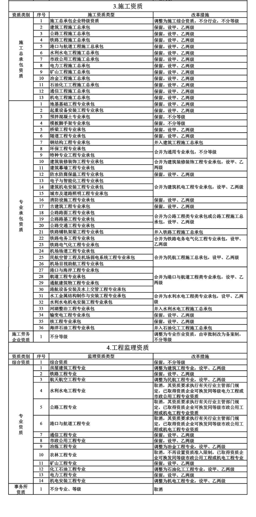 2.改革后建設(shè)工程企業(yè)資質(zhì)分類(lèi)分級(jí)表