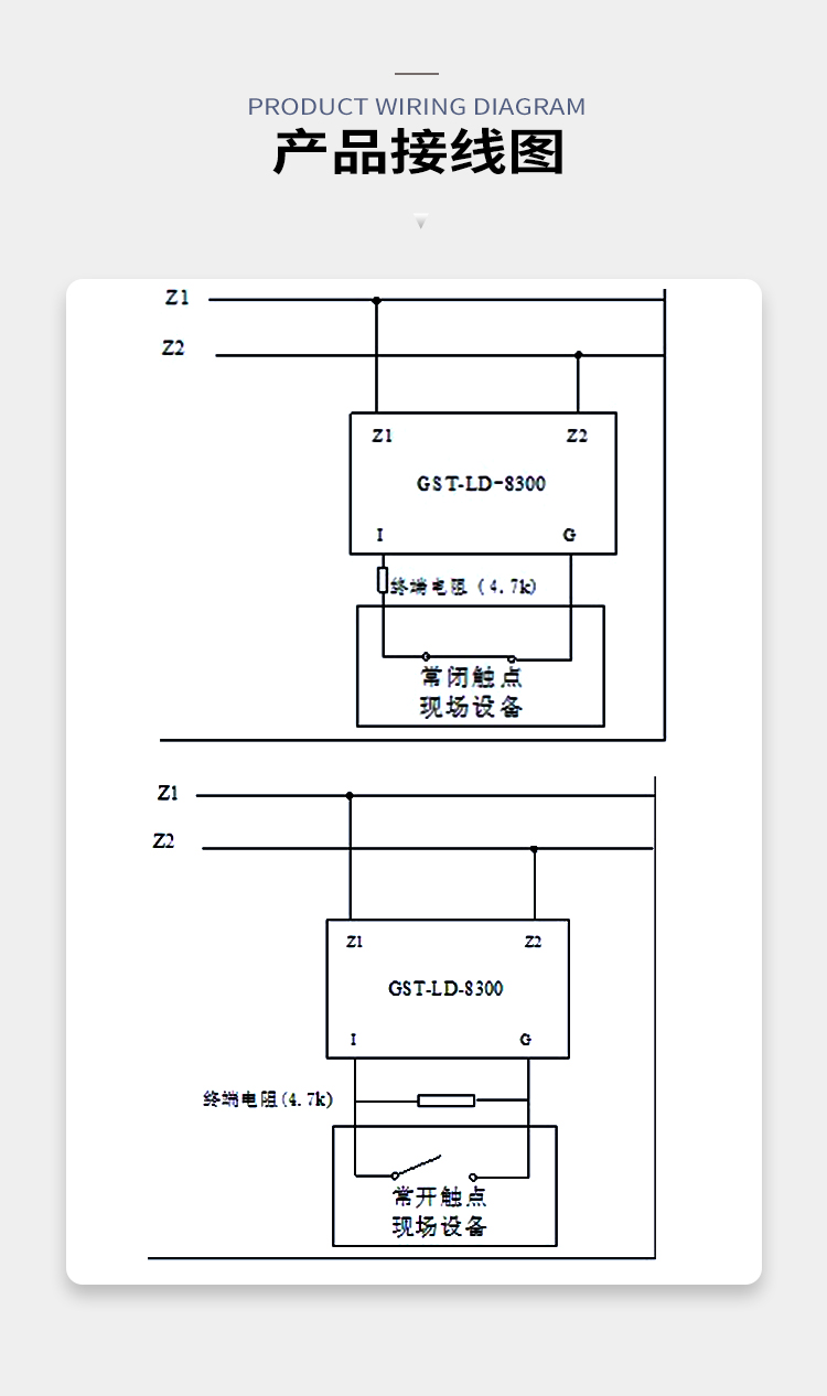 Z1、Z2:接火災(zāi)報(bào)警控制器信號二總線,無極性