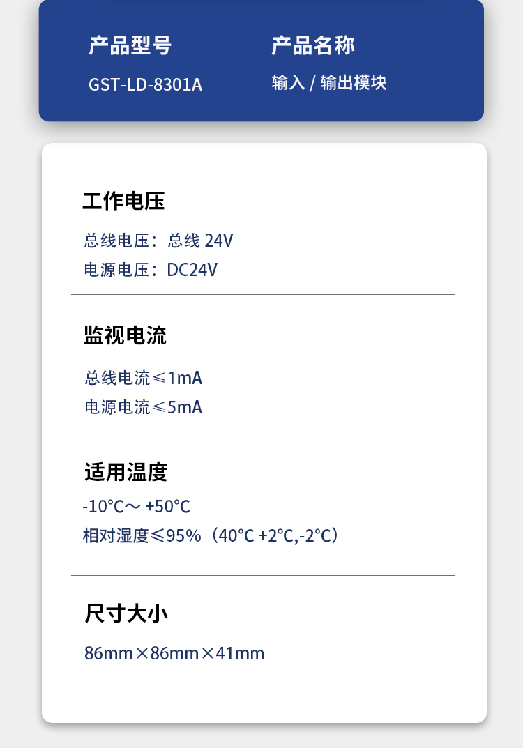 二、海灣GST-LD-8301A輸入輸出模塊參數(shù)