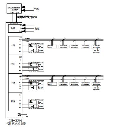 GST-QKP04可帶4個區(qū)的氣體滅火設(shè)備,實現(xiàn)對4個防護區(qū)的保護;GST-QKP04/2可帶2個區(qū)的氣體滅火設(shè)備,實現(xiàn)對2個防護區(qū)的保護。其中每個區(qū)所帶設(shè)備及數(shù)量如下: