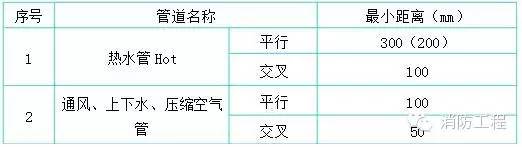 4.暗配電線管路與其它管道最小距離,如下表所示: