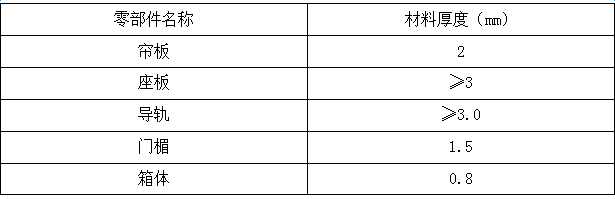 3.1簾板、導(dǎo)軌、門(mén)楣、卷軸等部位的表面不允許有裂紋、壓坑及較明顯的凹凸、錘痕、毛刺、空洞等缺陷。