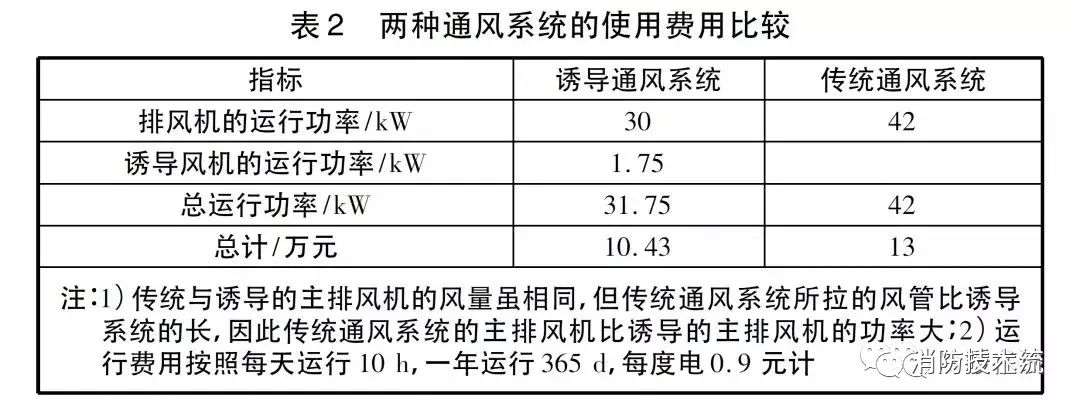 由于正常情況下只有通風(fēng)系統(tǒng)使用,所以日常運(yùn)行費(fèi)用分析只考慮通風(fēng)的費(fèi)用,兩種通風(fēng)系統(tǒng)運(yùn)行費(fèi)用比較見表2。