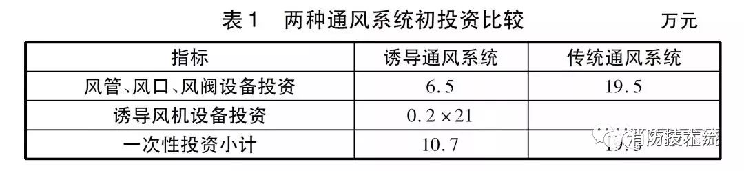 該車庫兩種通風(fēng)系統(tǒng)一次性投資情況見表1。