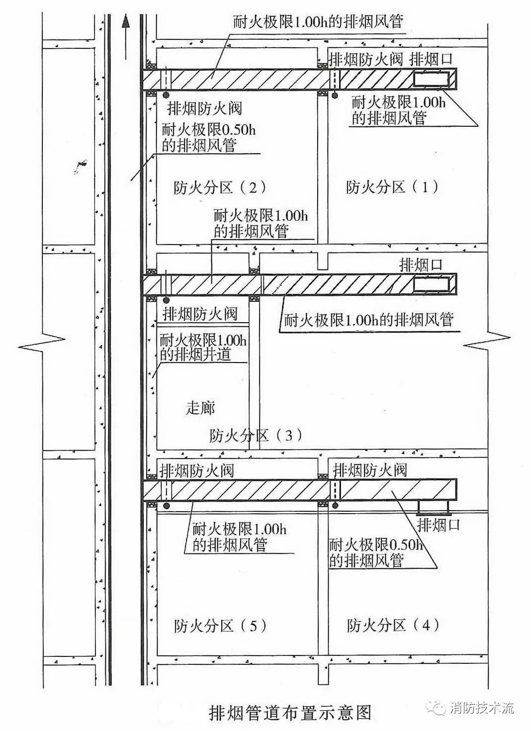 2 豎向設(shè)置的排煙管道應(yīng)設(shè)置在獨(dú)立的管道井內(nèi),排煙管道的耐火極限不應(yīng)低于0.50h。