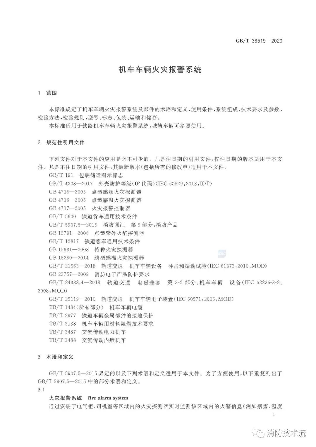 本標(biāo)準(zhǔn)適用于鐵路機(jī)車車輛火災(zāi)報警系統(tǒng),城軌車輛可參照使用 。