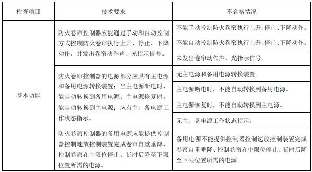c. 切斷防火卷簾控制器的主電源和卷門(mén)機(jī)的電源,使控制器在備用電源供電的情況下,檢查并記錄控制速放控制裝置動(dòng)作情況。