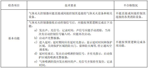 b. 通過(guò)啟動(dòng)和停止按鍵(按鈕)使氣體滅火控制器接收啟動(dòng)控制信號(hào)后,觀察并記錄氣體滅火控制器狀態(tài)(啟動(dòng)控制信號(hào)、延時(shí)信號(hào)、啟動(dòng)噴灑控制信號(hào)、氣體噴灑信號(hào))、顯示延時(shí)時(shí)間和保護(hù)區(qū)域、負(fù)載啟動(dòng)、記錄時(shí)間情況并檢查試樣是否能按預(yù)置邏輯工作。