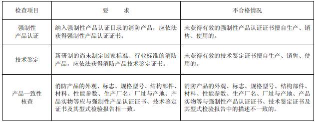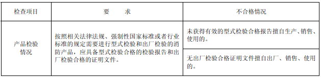 火災(zāi)報(bào)警設(shè)備的產(chǎn)品質(zhì)量應(yīng)當(dāng)按照相關(guān)法律法規(guī)、強(qiáng)制性國(guó)家標(biāo)準(zhǔn)或者行業(yè)標(biāo)準(zhǔn)的規(guī)定,經(jīng)型式檢驗(yàn)和出廠檢驗(yàn)合格。產(chǎn)品檢驗(yàn)情況檢查項(xiàng)目、要求及不合格情況見(jiàn)表2。