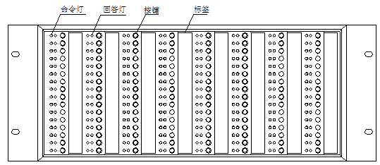 GST-LD-SD128智能手動(dòng)消防啟動(dòng)盤的外觀示意圖如圖2-11。每塊手動(dòng)盤的每一單元均有一個(gè)按鍵、兩只指示燈和一個(gè)標(biāo)簽。其中,按鍵為啟/??刂奇I,如按下某一單元的控制鍵,則該單元的命令燈亮(紅色),并有控制命令發(fā)出,如被控設(shè)備響應(yīng),則回答燈亮(紅色)。用戶可將各按鍵所對(duì)應(yīng)的設(shè)備名稱書寫在設(shè)備標(biāo)簽上面,然后與膜片一同固定在手動(dòng)盤上。