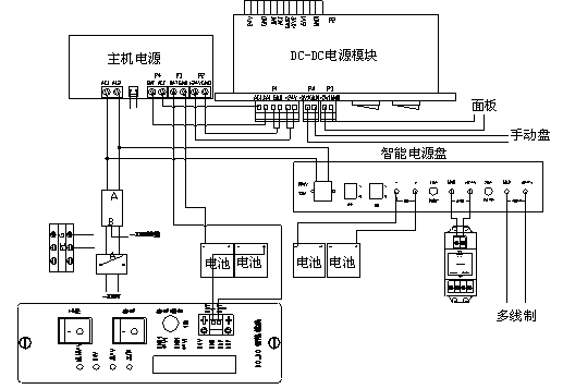 GST9000控制器電源配置包括主、備電兩部分,包括主機(jī)電源、變壓器、蓄電池、智能電源盤等如圖2-12所示。