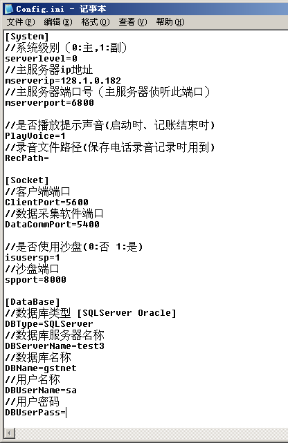 配置后臺控制軟件后打開c:program files GSTNet_ClientMaintain目錄下的配置文件config.ini,其中的設(shè)置項有: