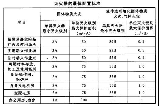 (2)滅火器的最低配置標準應符合下表規(guī)定。