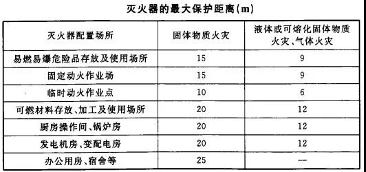 (4)滅火器的最大保護距離應符合下表的規(guī)定。