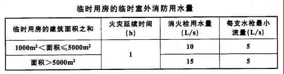 5、臨時用房的臨時室外消防用水量不應小于下表規(guī)定。