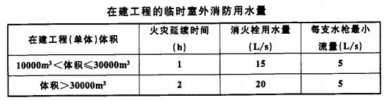 6、在建工程的臨時室外消防用水量不應小于下表的規(guī)定。