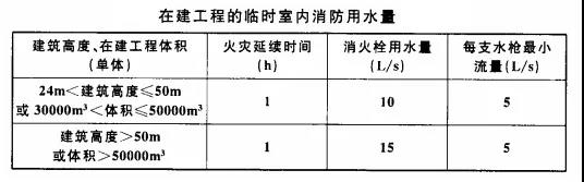 2、臨時消防用水量應為臨時室外消防用水量與臨時室內(nèi)消防用水量之和。