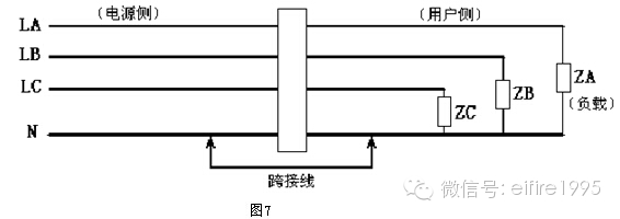 對于線路是否共零有一簡單檢查方法,如圖7在穿過互感器的零線上,在互感器外臨時跨接一根約12#的銅導線,長約1 ,要求接觸良好。