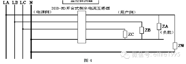 3、用戶側線路不獨立,相線有負載接到互感器前的零線或用戶系統(tǒng)外的總零線,如圖4。