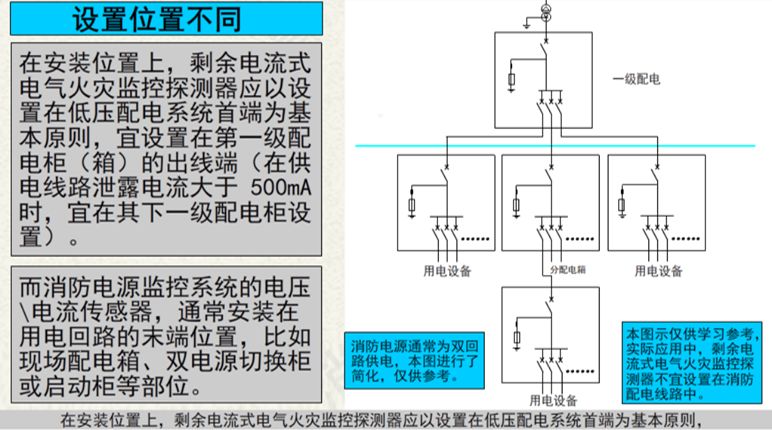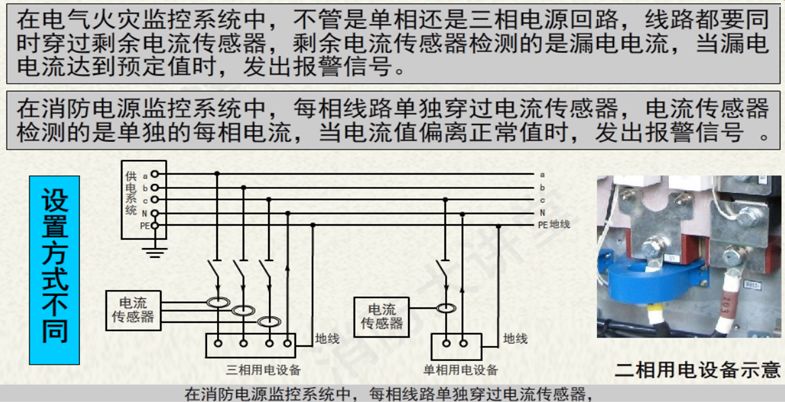 消防電源監(jiān)控系統(tǒng)和電氣火災(zāi)監(jiān)控系統(tǒng),是兩個(gè)完全不同的的概念。兩者的設(shè)置目的、檢測(cè)原理、檢測(cè)位置、應(yīng)用方式等,均有明顯區(qū)別。