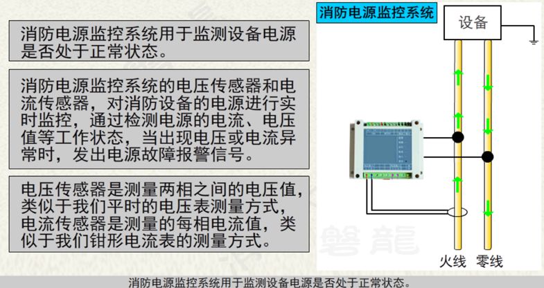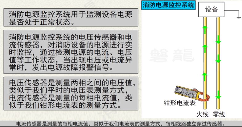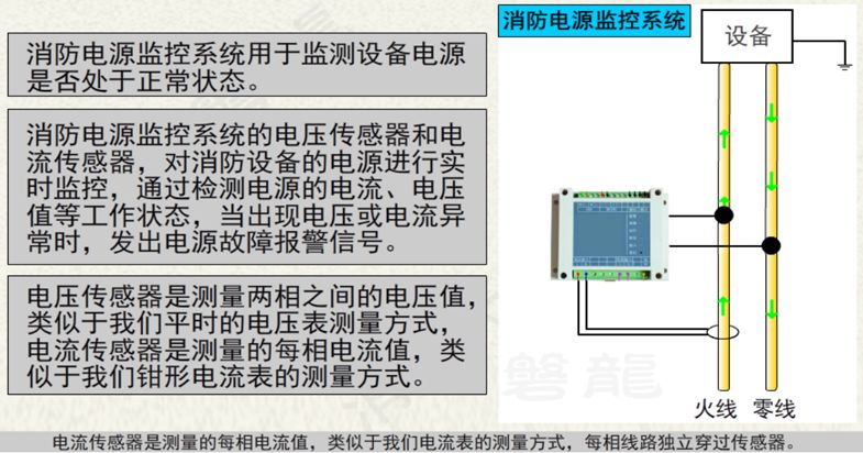 消防設(shè)備電源監(jiān)控系統(tǒng)用于監(jiān)控消防設(shè)備電源工作狀態(tài),在電源發(fā)生過(guò)壓、欠壓、過(guò)流、缺相等故障時(shí)能發(fā)出報(bào)警信號(hào)的監(jiān)控系統(tǒng),由消防設(shè)備電源狀態(tài)監(jiān)控器、電壓傳感器、電流傳感器、電壓/電流傳感器等部分或全部設(shè)備組成。