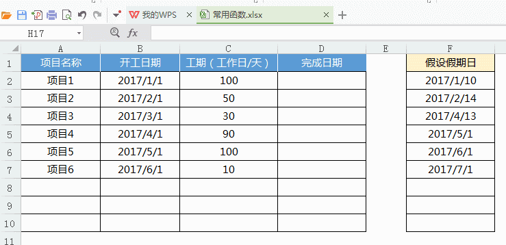 用途:計算某指定日期在N個工作日之后(或之前)的對應日期,一般用于計算一項工作需要做N天后完成的結束日期等。