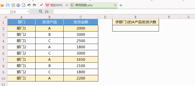 ▲舉例:求某部門某產(chǎn)品發(fā)貨次數(shù)