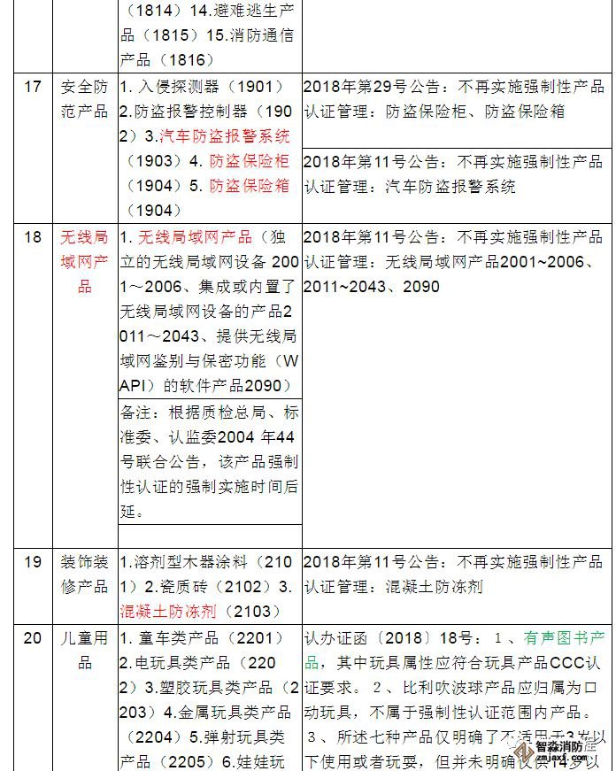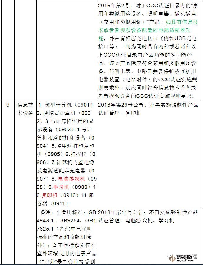 備注:以上分類以國家認(rèn)監(jiān)委2014年第45號公告《國家認(rèn)監(jiān)委關(guān)于發(fā)布強(qiáng)制性產(chǎn)品認(rèn)證目錄描述與界定表的公告》(2014年12月發(fā)布)為基礎(chǔ)。2014年12月以后的目錄調(diào)整情況,已經(jīng)在備注中注明,可查詢相關(guān)文件獲取準(zhǔn)確信息。以上內(nèi)容更新至2019年7月12日。