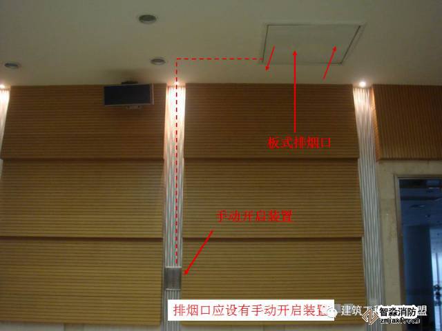 設(shè)置部位:按規(guī)范應(yīng)設(shè)置排煙措施,但又不具備自然排煙條件的房間、走道、中庭。