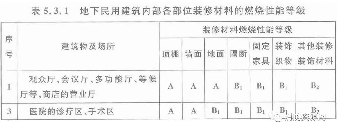 三、地下建筑中的醫(yī)院診療區(qū)、手術(shù)區(qū),內(nèi)部各部位裝修材料的燃燒性能等級(jí),不應(yīng)低于《建筑內(nèi)部裝修設(shè)計(jì)防火規(guī)范》表5.3.1的規(guī)定。
