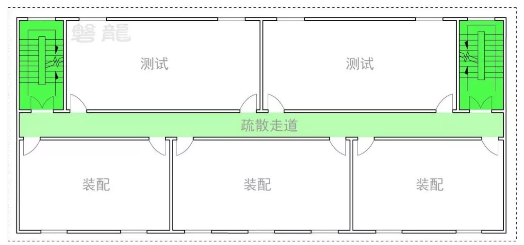 1、在圖示5的廠房建筑中,同樣應采用“房間”→“疏散走道”→“安全出口”的基本設置原則,確保風險逐級降低,廠房倉庫疏散走道兩側的隔墻,其燃燒性能和耐火等級,應符合《建筑設計防火規(guī)范3.2.1要求。