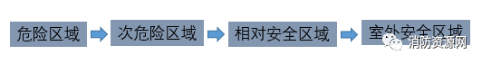 一、疏散路徑的確立,應確保風險逐級遞減,應以“危險區(qū)域”→“次危險區(qū)域”→“相對安全區(qū)域”→“室外安全區(qū)域”為基本原則,這是所有安全疏散路徑應該遵行的基本準則,是安全疏散設計的基礎: