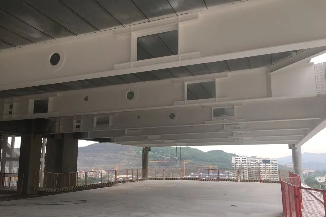 由于采用大跨度無(wú)柱空間和無(wú)吊頂設(shè)計(jì),