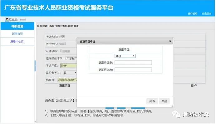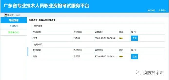 3.消息查看。申請的業(yè)務有新的反饋動態(tài)時,例如申請已受理、申請已辦結(jié)、申請需要修改補充材料等,左側(cè)【導航信息】菜單中的【消息中心】中會有閃動提示,并且顯示新信息條數(shù),例如【消息中心(1)】。