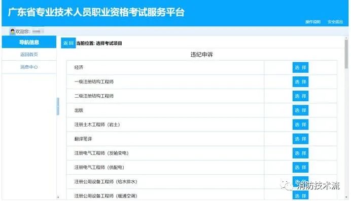 2.選擇需辦理業(yè)務的考試項目,點擊【選擇】按鈕進入。