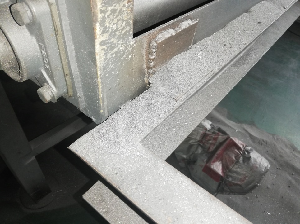 4、生產車間西北側拋丸機,現(xiàn)場鋼丸未及時清理。