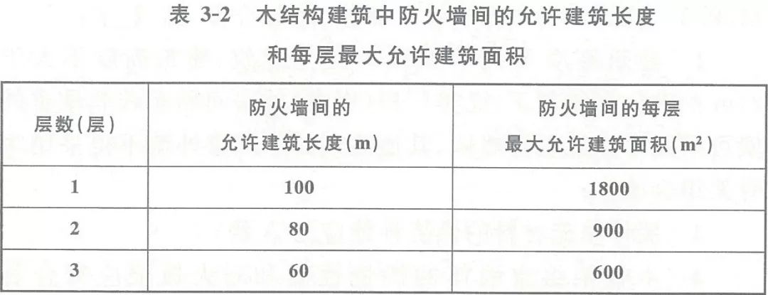 3、甲、乙、丙類廠房(庫(kù)房)不應(yīng)采用木結(jié)構(gòu)建筑或木結(jié)構(gòu)組合建筑。丁、戊類廠房(庫(kù)房)和民用建筑,當(dāng)采用木結(jié)構(gòu)建筑或木結(jié)構(gòu)組合建筑時(shí),其允許層數(shù)和允許建筑高度應(yīng)符合下表3-1的規(guī)定,木結(jié)構(gòu)建筑中防火墻間的允許建筑長(zhǎng)度和每層最大允許建筑面積應(yīng)符合下表3-2的規(guī)定。