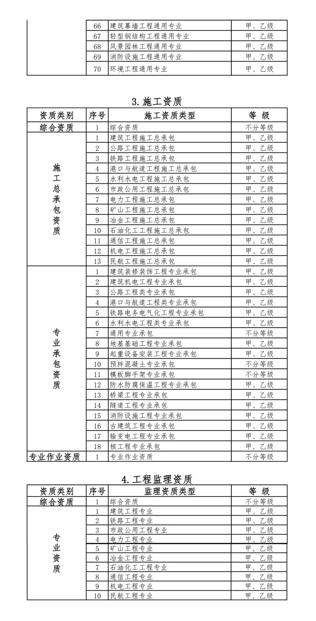 2.改革后建設(shè)工程企業(yè)資質(zhì)分類(lèi)分級(jí)表