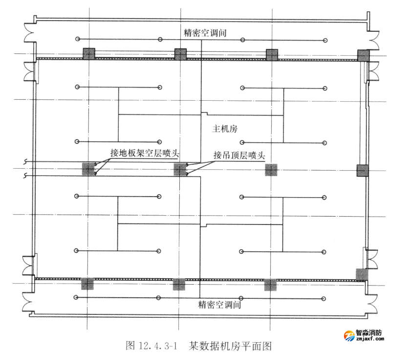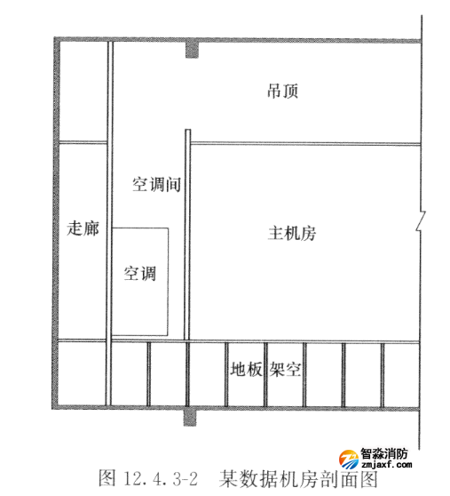 12.4.3有吊頂及夾層的防護(hù)區(qū)容積的計(jì)算需考慮吊頂及架空層(夾層),以及通過吊頂或架空層相通的隔壁空間。