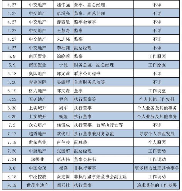 今年以來大部分房企高管的離職,都是自己提出辭呈,而公司公布的理由也是各有各的說法,曾一度引發(fā)外界各種猜測。在各種離職原因中,出現(xiàn)頻率最高的是“個人原因”以及“工作變動(或調(diào)動)”。