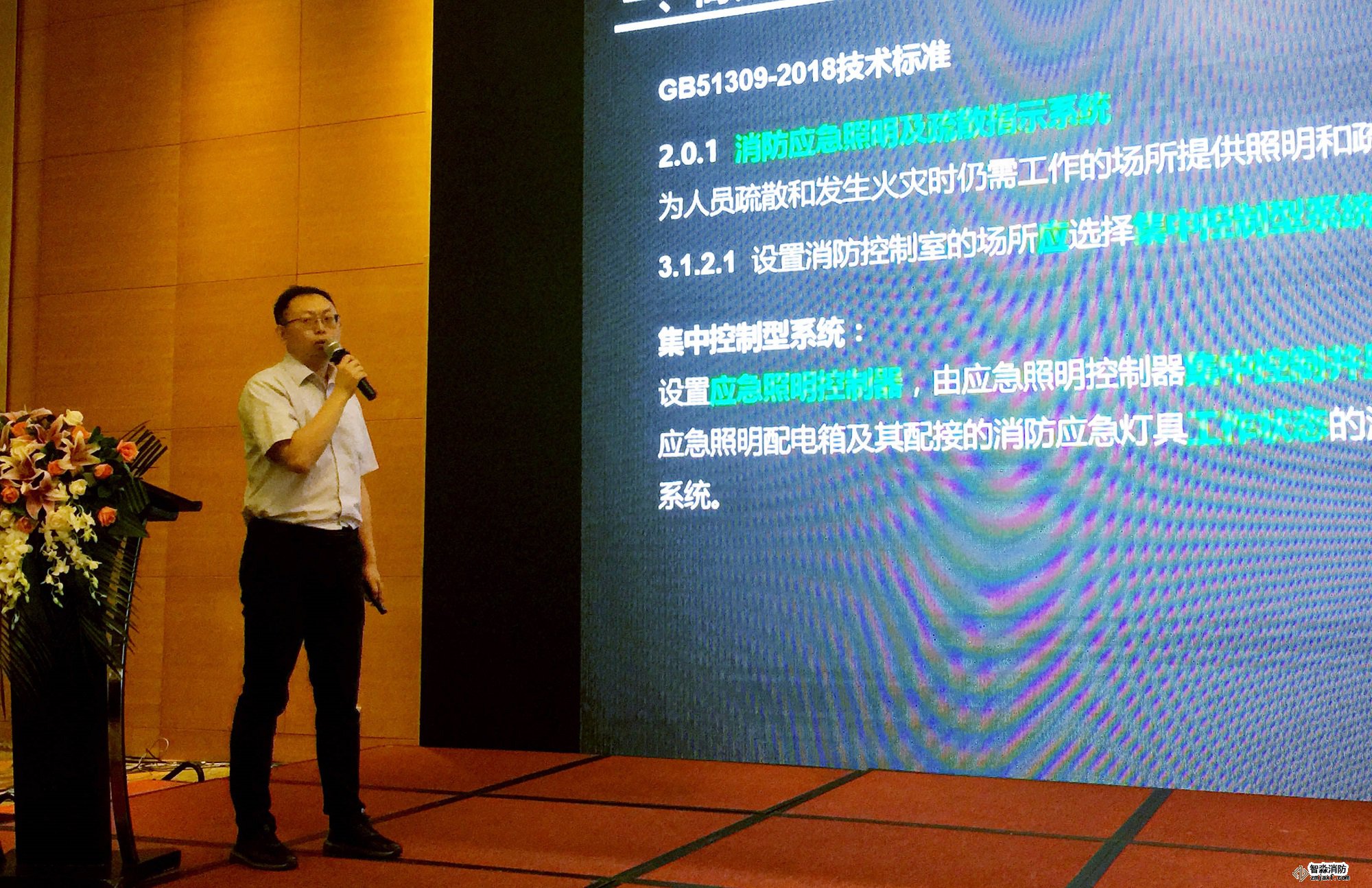 北區(qū)售前技術(shù)經(jīng)理金龍介紹了二線制火災(zāi)報(bào)警系統(tǒng)及消防應(yīng)急照明和疏散指示系統(tǒng)