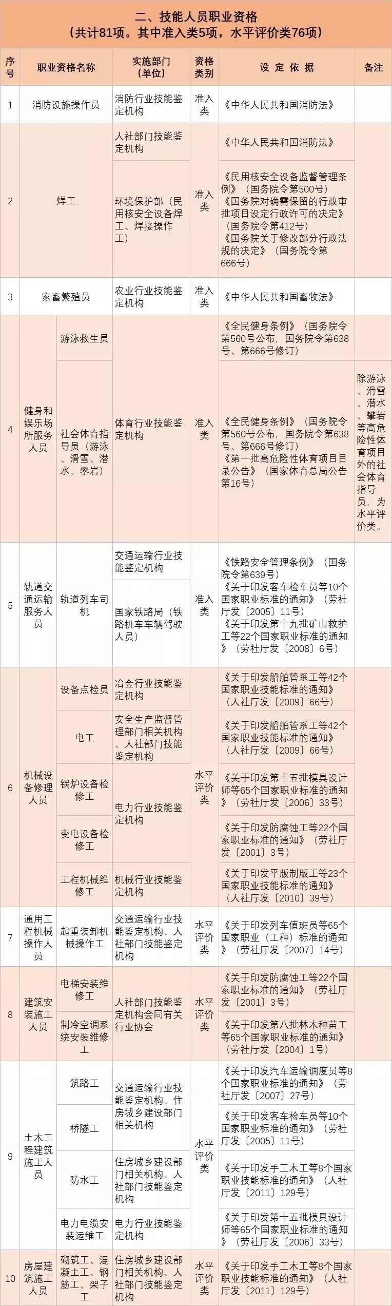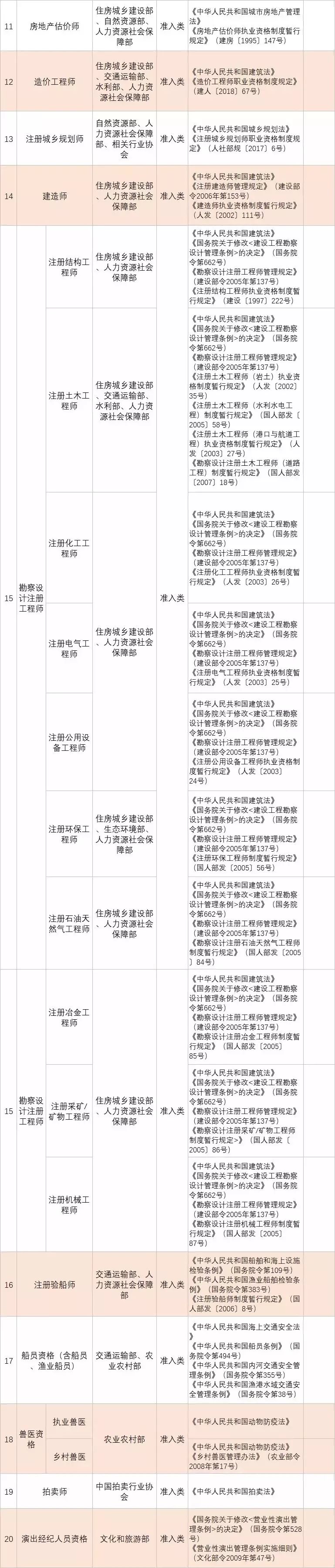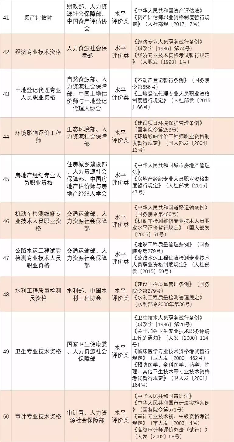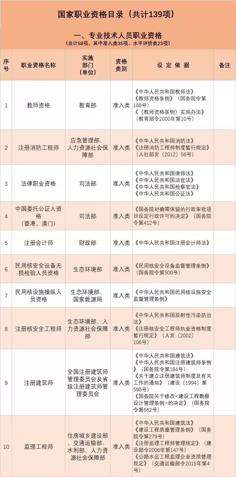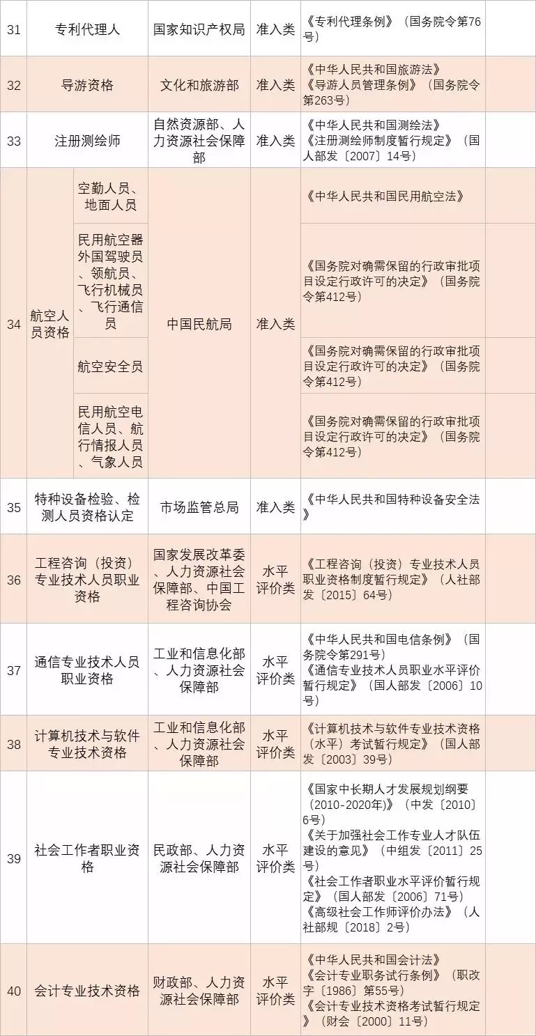 • 從2020年1月起,與公共安全、人身健康等密切相關(guān)的消防員、安檢員等7個(gè)工種依法調(diào)整為準(zhǔn)入類職業(yè)資格外,用一年時(shí)間分步有序?qū)?/span>其他水平評(píng)價(jià)類技能人員職業(yè)資格全部退出家職業(yè)資格目錄,不再由政府或其授權(quán)的單位認(rèn)定發(fā)證;