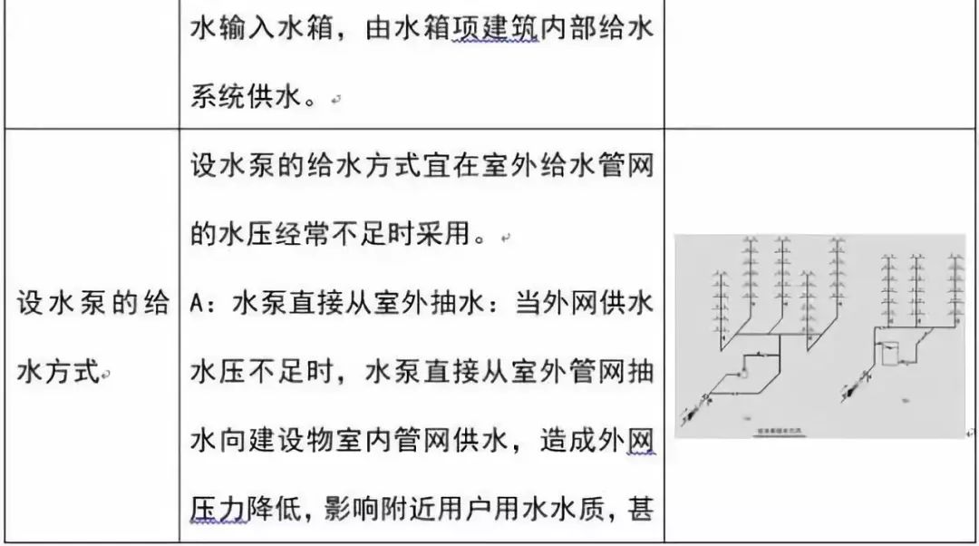 當室外給水管網(wǎng)的水壓不足或建筑物內部對供水安全性和穩(wěn)定性要求比較高時,需在給水系統(tǒng)中設置水泵,水箱、氣壓給水設備和儲水設備等。