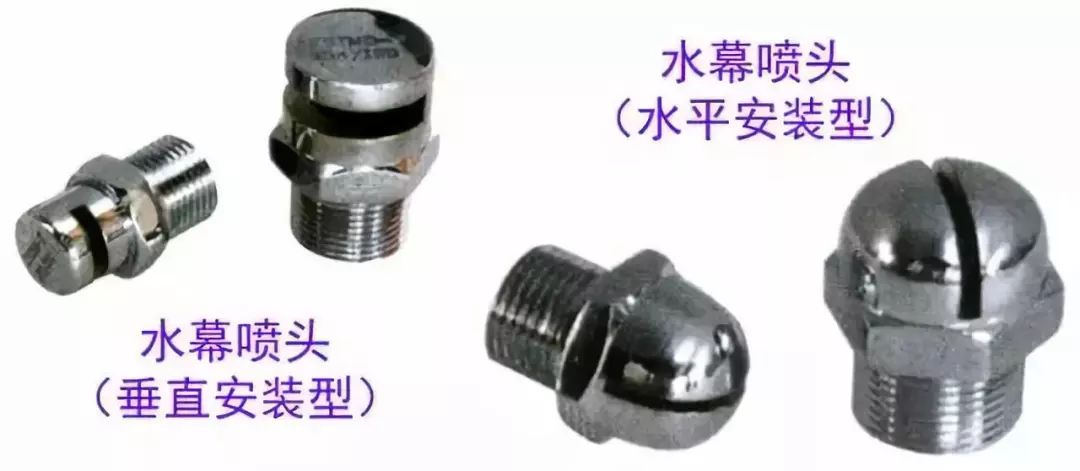 其構造按濺水盤的形式和安裝位置有直立型、下垂型、邊墻型、普通型、吊頂型和干式下垂型灑水噴頭之分。