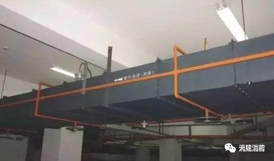 先看一個風管處噴淋安裝的工程實例: