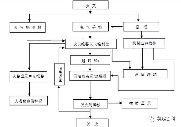 2)所有間隔必須密閉固定,藥劑噴放時無泄漏。系統(tǒng)采用組合分配方式,當某個保護區(qū)有火情發(fā)生時,煙、溫兩路探頭把火警信號傳至氣體滅火控制盤及控制室,聲、光自動報警并按照預(yù)定模式自動延時,啟動電磁閥及方向閥,使FM-200儲氣鋼瓶噴放氣體至發(fā)生火情的保護區(qū), 也可以手動放氣或進行機械緊急啟動。