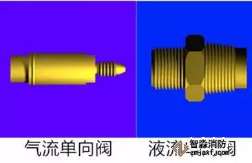 液流單向閥可防止滅火劑回流到空瓶或從卸下的儲(chǔ)瓶接口處泄漏滅火劑。